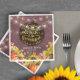 Thanksgiving Diner Party Papier Napkin Modèles - Elégant "Mange Drink and Be Thankful" Faux Gold Foil Script, Automne Feuilles d'érable, Citrouilles, Tournesol et lampes à cordes.