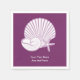 Serviettes décoratives violettes à thème de plage comprenant de belles coquillages de coquillages de coquillages de coquillages, nausolées et étoiles de mer dans une composition de vie morte qui comprend un modèle texte que vous pouvez personnaliser avec votre fête, rassemblement social ou message d'anniversaire à vos invités. Conçu pour un thème côtier, décoration de Floride ou rassemblement de plage d'été.