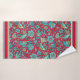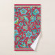 Ensemble magnifique de serviettes avec motifs floraux et oiseaux, dos en rouge vif brillant avec garniture aqua et lime clair. Design vibrant unique idéal pour les salles de bain invités, ou pour les occasions spéciales mariages, douches etc. Nous avons un grand choix de serviettes allant des classiques aux excentriques pour satisfaire tous les goûts.