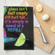 À MOITIÉ PLEIN EN VERRE j'aime penser, "LE VERRE N'EST PAS À MOITIÉ VIDE OU À MOITIÉ PLEIN… IL a SIMPLEMENT BESOIN D'UNE RECHARGE !" Ainsi j'ai créé ce verre de martini coloré par arc-en-ciel gravé à l'eau-forte avec des papillons et l'ai rempli à moitié plein et garni lui de tranche fraîche de chaux sur une sélection de martini de papillon pour être assorti ! Un amusement et une manière positive de décorer vers le haut de l'heure heureuse et du temps de cocktail. (En outre disponible sans message comme papillon Martini.)