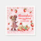 Add a "Berry Sweet" touch to your celebration with our adorable Strawberry Birthday Napkins! Perfect for a Berry sweet birthday, this design features a charming little girl in a strawberry print dress, surrounded by lush strawberries, white blossoms, and a delicious cupcake topped with a giant berry.