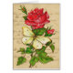 Cette illustration vintage de caractéristiques de conception belle d'un pulvérisateur de rose rouge, avec un papillon assez jaune pâle été perché là-dessus. L'arrière - plan est une couleur bronzage avec le beau manuscrit.