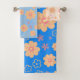 Set von 3 Retro Blumenmuster Badetuch Set von Dreaming Cocoon. Die Mischung und das Zusammenspiel von ruhigen Farben in leuchtend blau, sanft blau und sanft orange, schaffen eine schöne Harmonie. Vintage Muster orangefarbene Blume mit ruhigen Farbtönen, das ideale Geschenk für diejenigen, die Blume Liebe und Romantik im Herzen!