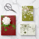 Umschlagpapier Flachblatt Set 3 rot & grün, creme & grün, grün und creme