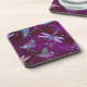 Fröhliche Libellen auf lila Muster, Set von 6 robusten Untersetzer aus Kunststoff mit Korkunterlage. Schönes Geschenk.