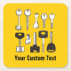 Ein Set mit Schwarz-Weiß-Tasten mit benutzerdefiniertem Text auf gelbem Hintergrund.