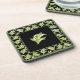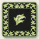 Ein sehr hübsches Set von sechs quadratischen Cork-Backed-Untersetzer, mit einem Jugendstil-Muster von Lilies-of-the-Valley auf schwarzem Hintergrund und passendem Rahmen; von der Posh & Painterly "For the Liebe of Lilies" Kollektion.