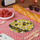 Nahtloser gelber Hintergrund mit Tasten und benutzerdefiniertem Text.