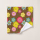 Genießen Sie dieses Retro-Vintage Handtuch-Set. Der braune Hintergrund mit gelben, blauen Blume, rosafarbenen Nelken und blauen Blumen wird bestimmt diejenigen ansprechen, die die Stile der 70er Jahre Liebe haben.