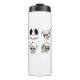 A collection of four diverse skull illustrations, including a Jack-o'-lantern face, a skull pierced by nails, a skull wearing a baseball cap, and a screaming cartoon skull