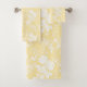 Ein wirklich reizender, romantischer dennoch moderner Blumendamast im neuen weißen und weichen Butterblumegelb-Badtuch-Set.