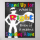 STEHEN SIE AUF, WAS RICHTIG IST, AUCH WENN ES BEDEUTET, STEHEND ALLEIN EIN großartiges Plakat zu hängen, in einem Klassenzimmer, einem Schulbüro oder einem Schulberatungsbüro, um die Kinder daran zu erinnern, für das Richtige einzustehen. Ein sehr helles und unterhaltsames Poster zur Dekoration des Klassenzimmers jeden Alters, Sozialarbeiterbüros, Therapeut-Büros oder Beraterbüros mit. Mit einem Superhelden-Silber und schönen hellen Farben, um ihre Aufmerksamkeit zu erregen. Der Hintergrund ist ein Imitat Stil Chalkboard Hintergrund - Prints schön!
