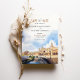 Mit dieser "Save the Date"-Karte können Sie Ihre Hochzeit stilvoll verkünden und eine wunderschöne Aquarellillustrierung der ikonischen Plaza de España in Sevilla, Spanien, präsentieren. Das Kunstwerk vereint die Pracht der spanischen Architektur mit den breiten Arkaden, den verzierten Türmen und dem reflektierenden Kanal, das Set unter einem hellen Himmel in sanften Blau-, Ocker- und Cremetönen. Ideal für eine romantische Hochzeit in Urlaubsort, verkörpert diese Karte die Eleganz und den Charme Andalusiens und ist somit der ideale Ort für einen unvergesslichen Aufenthalt in Südspanien.