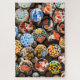 Sevilla, Spanien. Eine Reihe von unterschiedlich und farbenfroh dekorierten Souvenirflaschen.