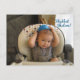 Niedliches jüdisches Baby hat mit einer blauen Schüssel seine eigene Kippa gemacht! Adorable Karte für Shabbat.
