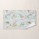 Hübsches Shabby Chic Hütte inspiriertes Badehandtuch Set mit Pastellvögeln, Blume und Äste auf pastellblauem Hintergrund
