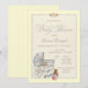 Shabby Chic Babydusche Einladungen mit wunderschönem Kinderwagen, Teddybär und Geschenke auf einem Vintagen, blumigen und gelben Streifen Hintergrund. Diese Vintage Baby Dusche Einladung ist einfach für Ihre Veranstaltung angepasst, indem Sie einfach Ihre Details in den Schriftart Stil und Wortlaut Ihrer Wahl.