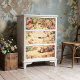 Diese Shabby Chic-Illustration eines Vogelkäfigs wurde mithilfe von KI und realen Texturen und Handschriften erstellt. Benutzen Sie dieses Plakat als Wandkunst oder integrieren Sie es in Ihre Möbeldecoupage Projekte.