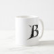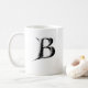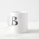 Eine elegante und moderne Tasse mit dem Buchstaben "B" in einem kühnen dunklen Stil. Das Design hebt scharfe Konturen mit blitzähnlichen Rissen hervor, ergänzt durch weichen Rauch und einen leuchtenden Heiligenschein für ein mysteriöses und exklusives Erscheinungsbild.
