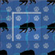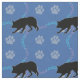 Eine Silhouette Border Collie rau in klassischer Lage mit einem blauen Hintergrund mit Pfotendrucken und Spuren in Grautönen, Rosa und Blau dekoriert. Design von Diane Blackman. Das gleiche Design ist auch bei anderen lustigen Hundebildern erhältlich.