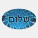 Shalom auf blauem Fraktal Ovaler Aufkleber
