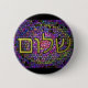 Schicken Sie eine Mitteilung des Friedens zur Welt mit diesem SHALOM Button im Gold mit buntem Mosaikhintergrundentwurf!