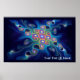 Ein mehrfarbiges (rosa, grün, blau, gelb) Fraktal auf dunkelblauem Hintergrund. Eine Interpretation, wie der Nachthimmel einem sibirischen Schamanen erscheinen kann, während er in einer Trance mit den Geistern kommuniziert. Fügen Sie Ihren eigenen Text hinzu.