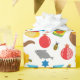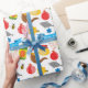Großartiges Muster für die Verpackung von Rosh Hashanah Geschenken. Shana Tova mit traditionellen jüdischen Symbolen auf weißem Hintergrund.