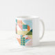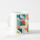 Ein buntes Muster geometrischer Formen, das wir die "formte Welt" nennen wollen. Dieses Design sieht auf dieser Tasse wirklich effektiv aus