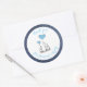 Merci à ceux qui vous sont chers de partager votre joie avec un autocollant à parties scintillant bleue avec deux beaux éléphants tenant des ballons et un script décoratif bleu personnalisé