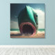 Shark sculpture on the beach, in the style of rendered in cinema4d, surrealistic grotesque, dreamlike illustration, dark cyan and green, concept art, gigantic scale, fish-eye lens