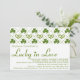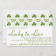 Ces invitations nuptiales de douche de shamrock vert et blanc avec le motif à motifs de losanges de shamrocks et de coeurs d'un entrecroisement est parfaite pour mars, Irlandais ou douche nuptiale orientée du jour de St Patrick. © Chrissy H. Studios, LLC d'illustration. Tous droits réservés.