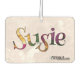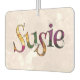Ein farbiges Fest blüht den Namen "SUSIE" auf ihrem blindfarbenen, rosa, eigens für den Autos vorgesehenen Friseur. Ein einzigartiges Geschenk, das sie nie erwarten wird!
