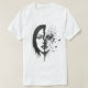 This monochrome design features a split female face—one side solid and alive (Aigul) with elegant swirls, the other fragmented (Rumina), dissolving into birds or dust. A deep, jagged crack divides them, symbolizing guilt and longing. The intricate linework and stippling create a surreal, melancholic contrast between presence and memory.