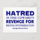 Es ist wichtig, nicht hasserfüllt zu sein, zu versuchen, die Sichtweise der anderen Seite zu verstehen, aber dann ist es auch beängstigend. Sei tapfer! George Bernard Shaw wäre stolz auf Sie.