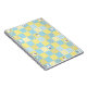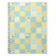 Ein lustiges Spiral-Notebook, mit einem Imitat Patchwork-Design von Schafmotiven und Mustern in Blues und Yellows, gepaart mit der Koordination von Karo Ginghams und Polkas Dots.