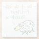 Getränke Untersetzer für einen Pool-Player. Der sonnige Cartoon eines Schafes auf einem Hügel. Das Schaf sagt "Best Baa None". Design-Wiederholungen auf beiden Seiten