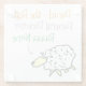 Getränke Untersetzer für einen Beerdigungsdirektor. Der sonnige Cartoon eines Schafes auf einem Hügel. Das Schaf sagt "Best Baa None". Design-Wiederholungen auf beiden Seiten