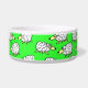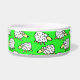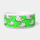 Schaf-Hund-Futter-Schüssel. Fun Herde von Schafen Cartoon Design auf diesem Heimtierfutter Schüssel. Ideal für Hunde, besonders für Schafhunde. Grüner Hintergrund.