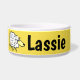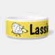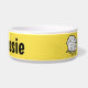 Personalisieren Sie diese lustige Schaf-Cartoon Design Haustierfutter-Schüssel. Ideal für Hunde, besonders für Schafhunde. Gelber Hintergrund.