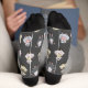 Sheep-Symbole. Nahtloses Muster. Benutzerdefinierte Hintergrundfarbe. Benutzerdefinierte Farbe des oberen Streifens. Benutzerdefinierter Text auf jeder Socke.