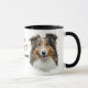 "Sheltie Kisses reparieren alles" erklärt diese niedliche Tasse für den Shetland Sheepdog Besitzer. Das Bild auf jeder Seite ist ein Aquarellbild eines bezaubernden Sheltie.