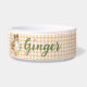 Diese hübsche Schüssel hat einen Sheltie Laurel in einem Lorbeerverzweiger Kranz auf einem gelben Gingham Hintergrund. Die Farben sind braun, braun, braun, olivgrün und Senfgelb. Sie können mit dem Namen Ihres Haustieres personalisieren.