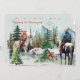 Shenanigans de Noël avec carte Aussies. Couper un sapin de Noël le soir de Noël est une tradition pour beaucoup. Ce cowboy et cowgirl à cheval emmènent leurs chiens bergers australiens (australiens) dans l'arrière-pays et les bois pour choisir le meilleur arbre de Noël. Les chiens ont leur propre idée d'aider ! Joli, drôle, nostalgique, plaisir hivernal dans la neige avec l'étoile de Bethléem brillant dans le ciel au-dessus des montagnes. "Décorez votre Noël avec joie !" Joyeux Noël et Bonne Année !" Personnalisez avec votre propre nom de famille ou supprimez et ajoutez vos propres écrits personnels.