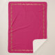 Diese warme und gemütliche Sherpa-Decke zeigt sich in einem reichen Rosa-Schatten namens Pink Peacock vom Panetone Institut für Farbe für 2019. Die Farbe dieser Decke ist eine helle Lochfarbe mit einem goldfarbenen Schriftrolldruck rund um die Form dieser Decke. Passen Sie diese Decke an oder kaufen Sie sie wie gezeigt.