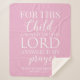 L'expression réconfortante "Pour cet enfant, j'ai prié, et le Seigneur a répondu à ma prière - 1 Samuel 1:27" est magnifiquement présentée sur la couverture dans un design simple mais élégant. Que vous cherchiez un cadeau de baby shower unique pour un petit particulier ou que vous cherchiez quelque chose de spécial pour votre propre bébé, cette couverture personnalisée vous impressionnera.