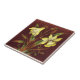 Diese Daffodil/Narcissus Designfliese wurde in verschiedenen Farbvarianten gefertigt. Unsere Reproduktion erfolgt aus originalen rutschigen (Barbotine) Fliesen aus dem späten 19. Jahrhundert. Das ist die dunklere Version mit einem warmen Rosthintergrund. (Die leichtere Version ist separat aufgeführt).