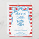 Reel in the fun with this quirky coastal design featuring bold red stripes, playful hand-drawn fish, and a big bow that says "party ready." Perfect for a seaside send-off, seafood soirée, or beach weekend with the girls. Fully editable to fit your plans—whether it's Miami or Margaritaville.
