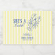 An elegant coastal bridal shower wine labels featuring butter yellow stripes and refined blue typography. A charming line art lobster adds a whimsical beach touch, while the mix of modern and vintage typefaces creates a timeless yet fresh design. Perfect for celebrating love with seaside sophistication.