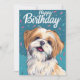 Shi Tzu Geburtstag Gruß. Ein lächelnder Shi Tzu wünscht zum Geburtstag viel Glück. Perfekt für alle Shi tzu Liebhaber und Shi Tzu Besitzer.